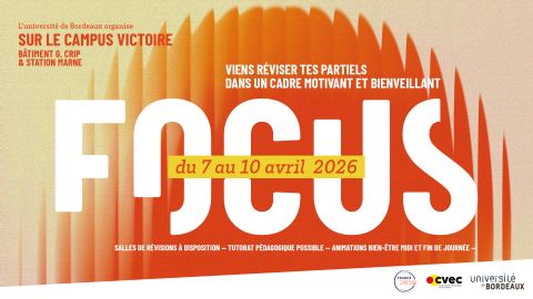 Dans le cadre de vos partiels, FOCUS vous propose de réviser vos partiels de façon différente ! Rendez-vous du mardi 7 au vendredi 10 avril sur le campus Victoire.