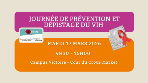 Participez à notre journée de prévention et de dépistage du VIH. L'association Poppy sera présente pour répondre à vos questions et proposer un dépistage rapide, gratuit et confidentiel.